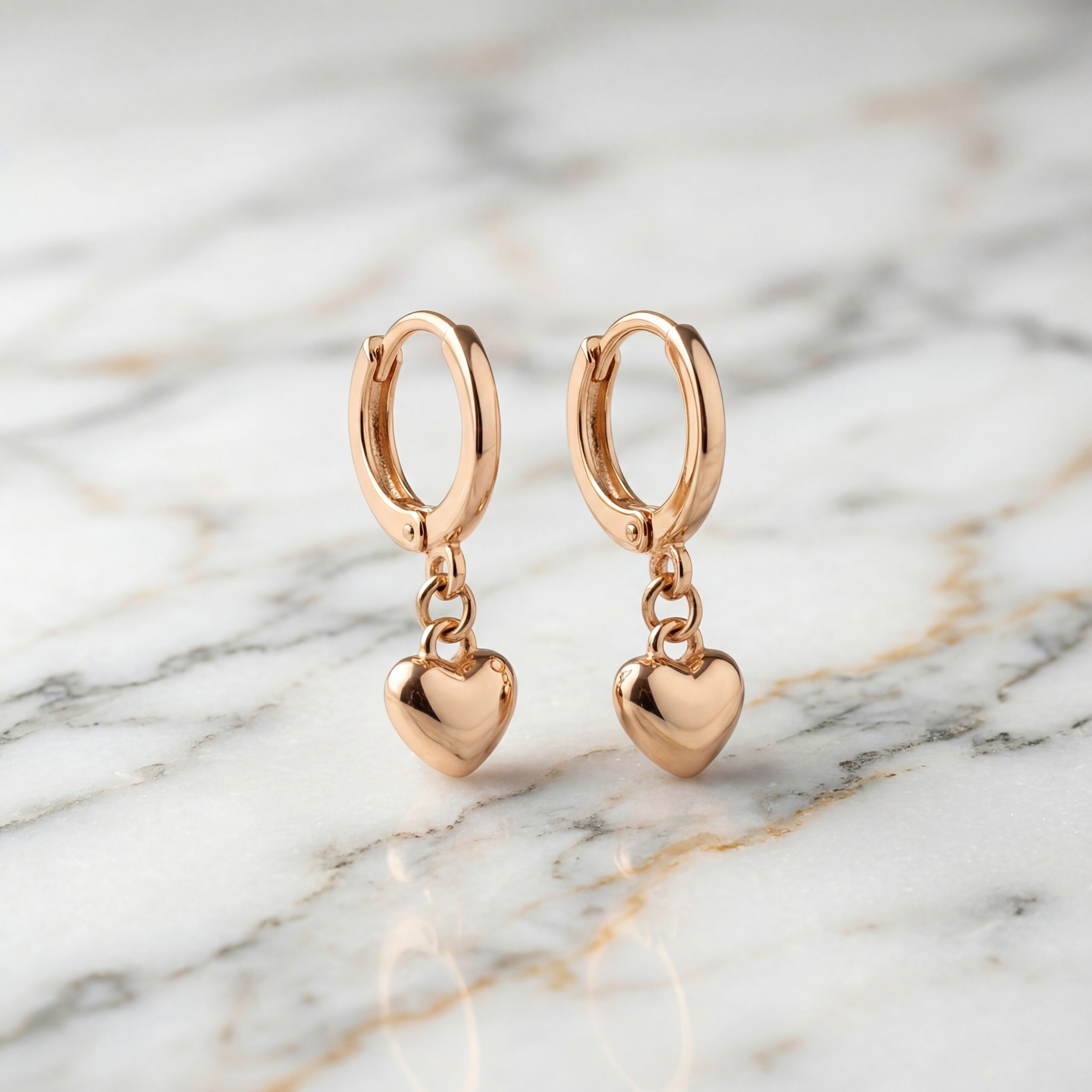 Par de Aretes Huggie Clásicos con Dije Corazón Abombado Brillante Bañado en Oro 18k Hipoalergénicas e Impermeables – D’moé Joyería