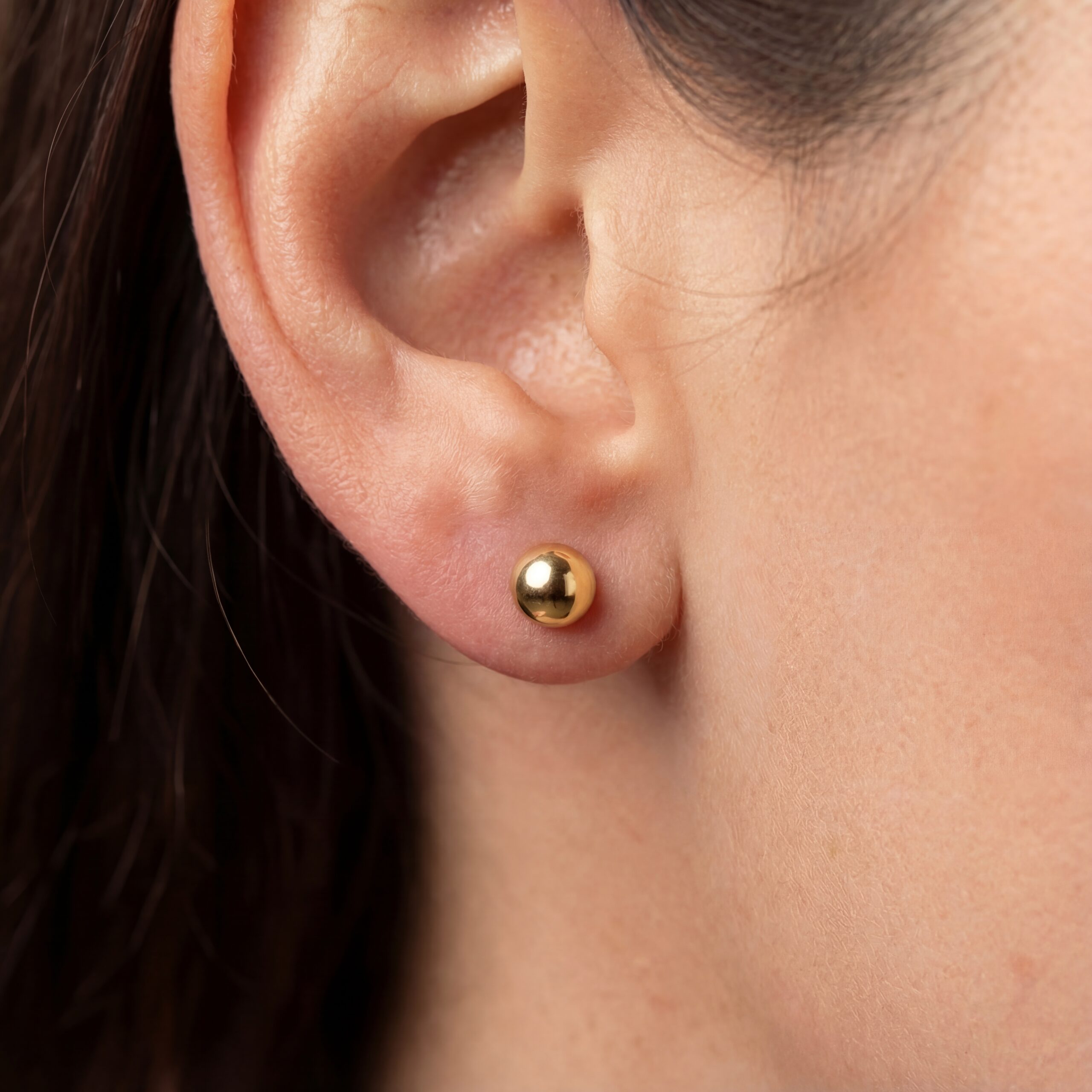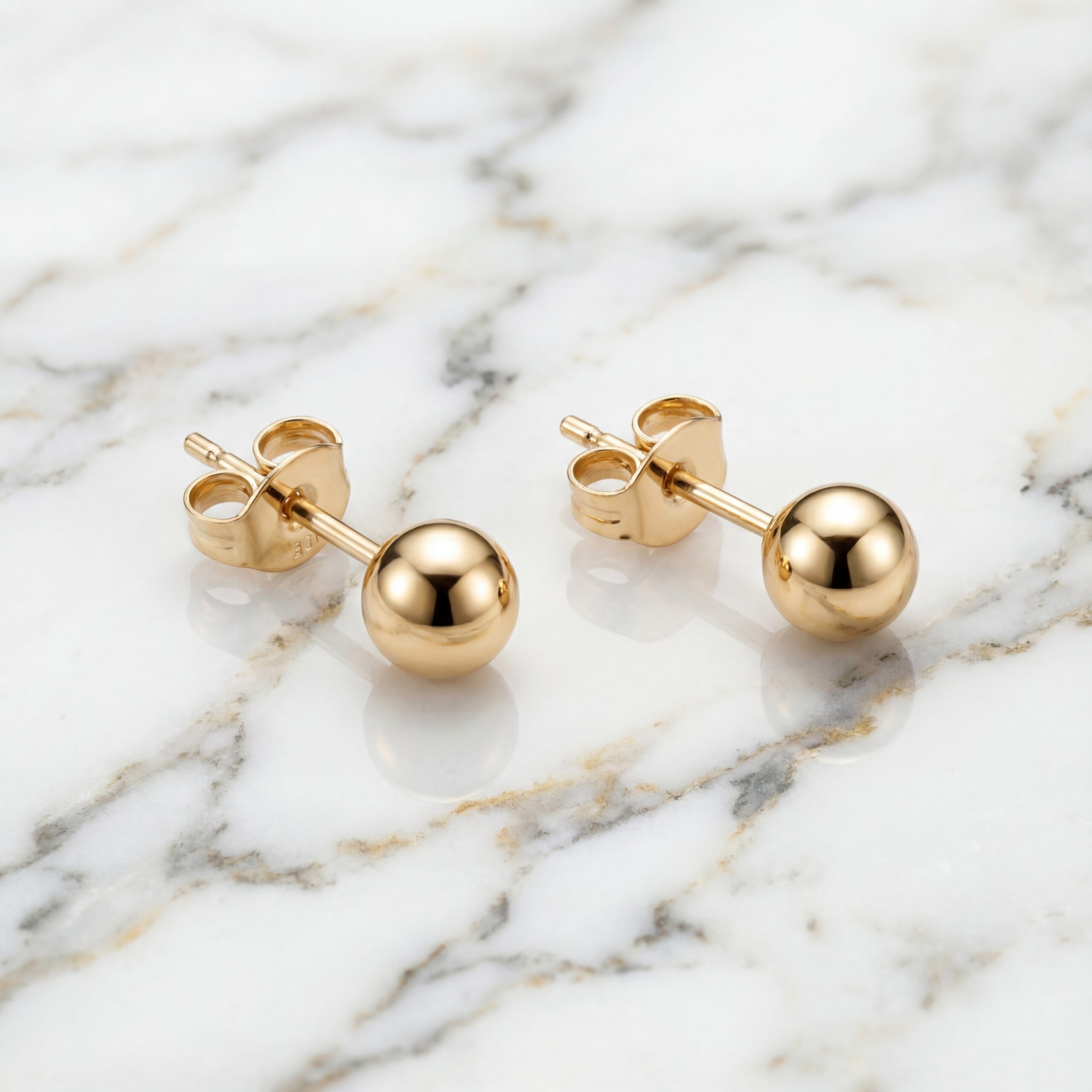Par de Aretes botón con esferas redondas de acabado pulido Bañado en Oro 18k Hipoalergénicas e Impermeables – D’moé Joyería