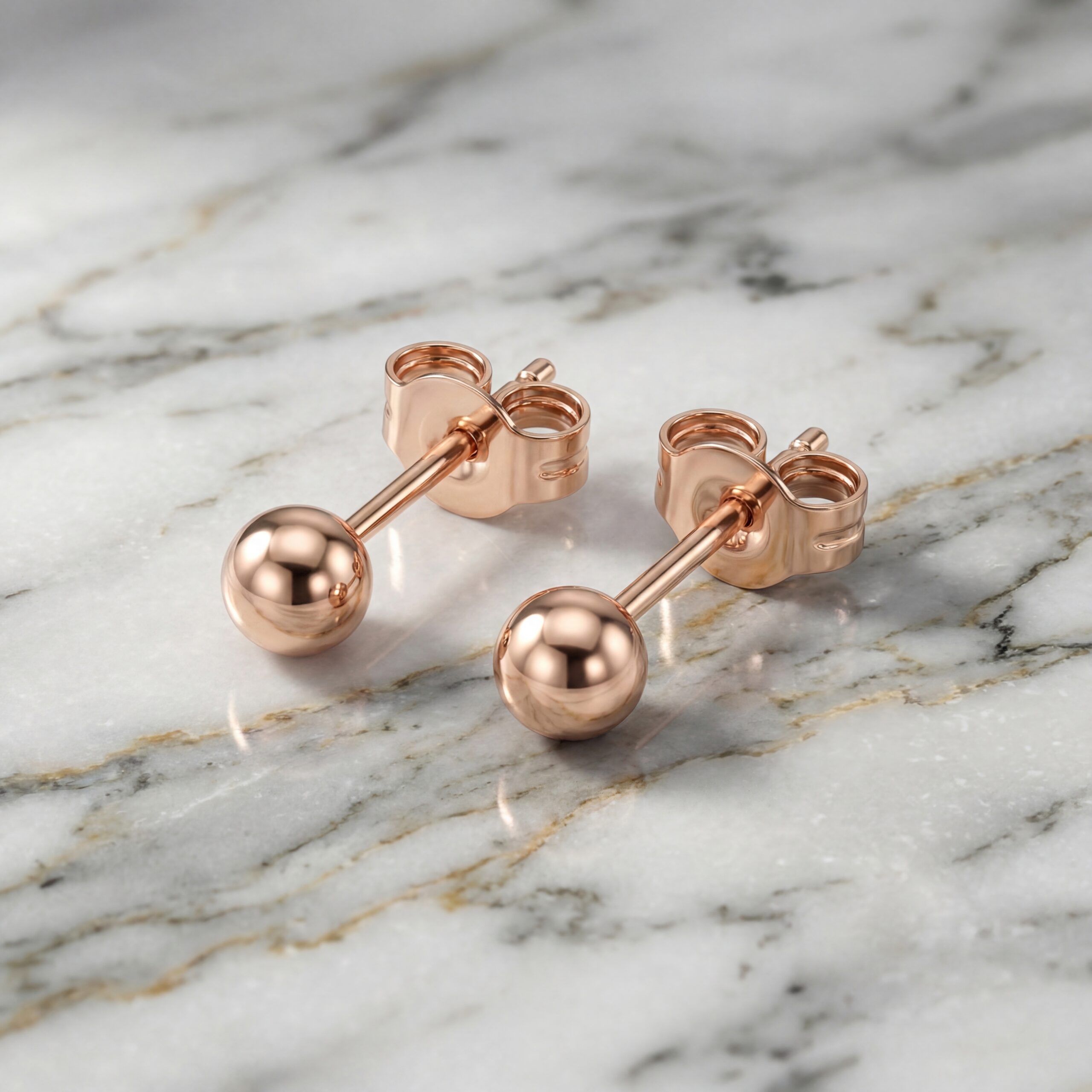 Par de Aretes diseño de cuenta redonda pulida Bañado en Oro 18k Hipoalergénicas e Impermeables – D’moé Joyería