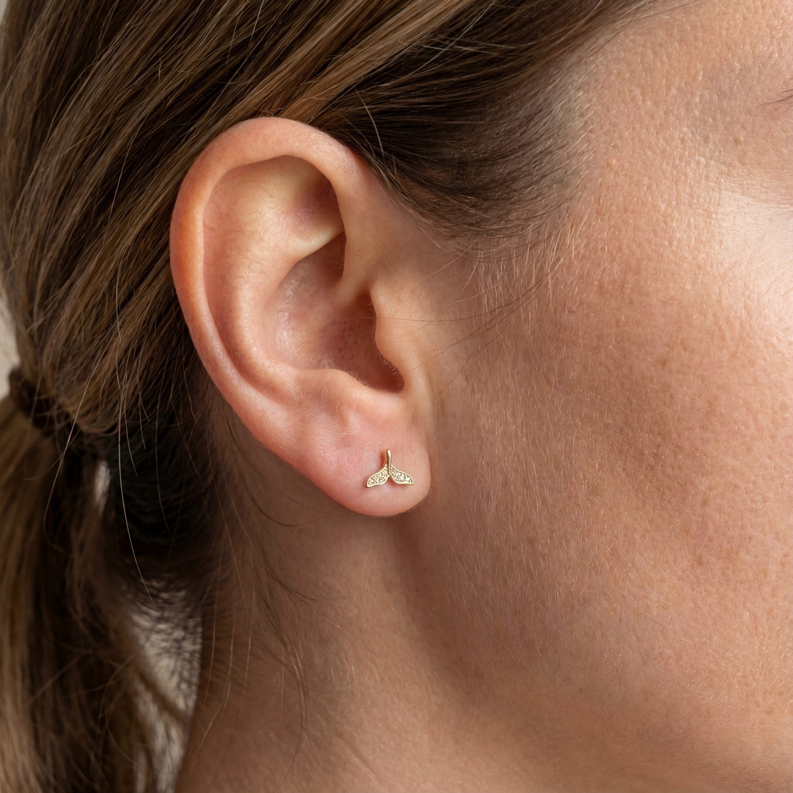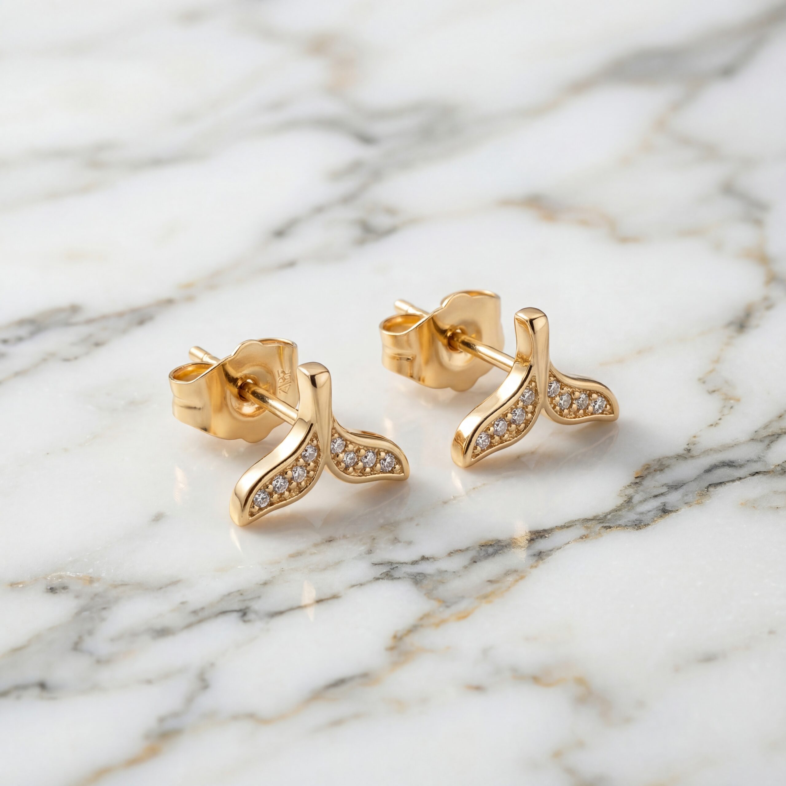 Par de Aretes Cola de Sirena con Pavé de Zirconias Brillantes Bañado en Oro 18k Hipoalergénicas e Impermeables – D’moé Joyería