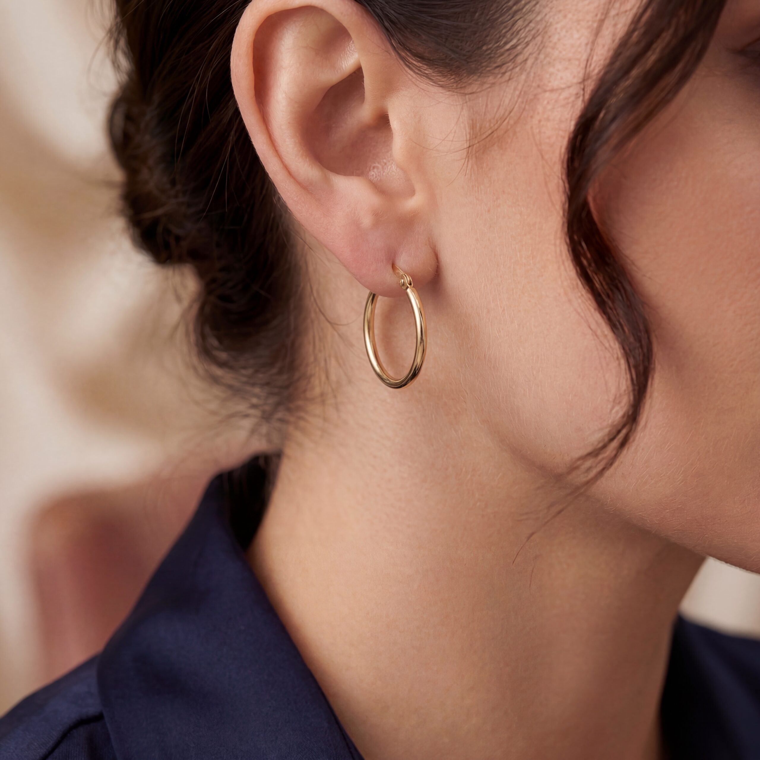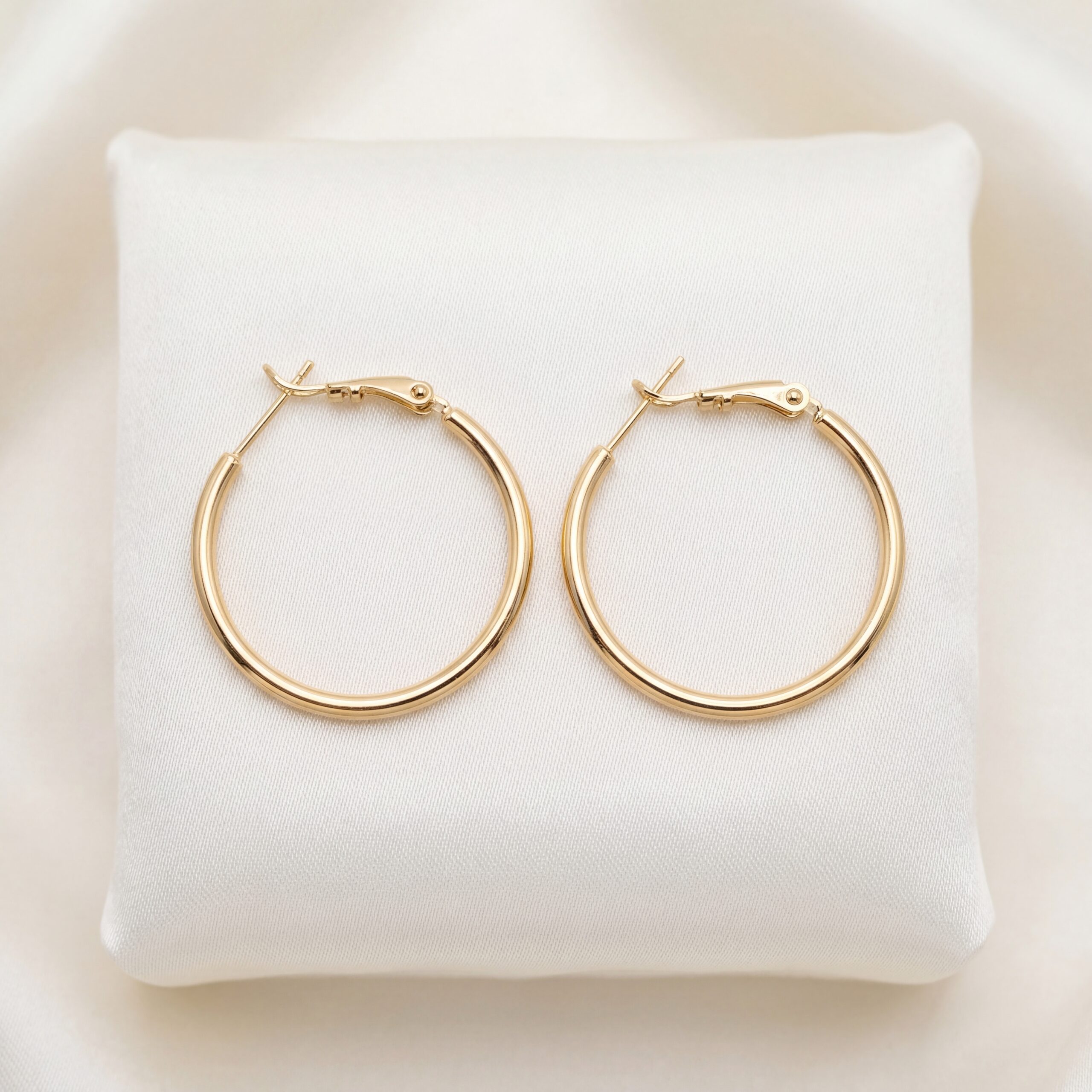 Par de Aretes Argollas Clásicas Medianas Pulidas Bañado en Oro 18k Hipoalergénicas e Impermeables – D’moé Joyería