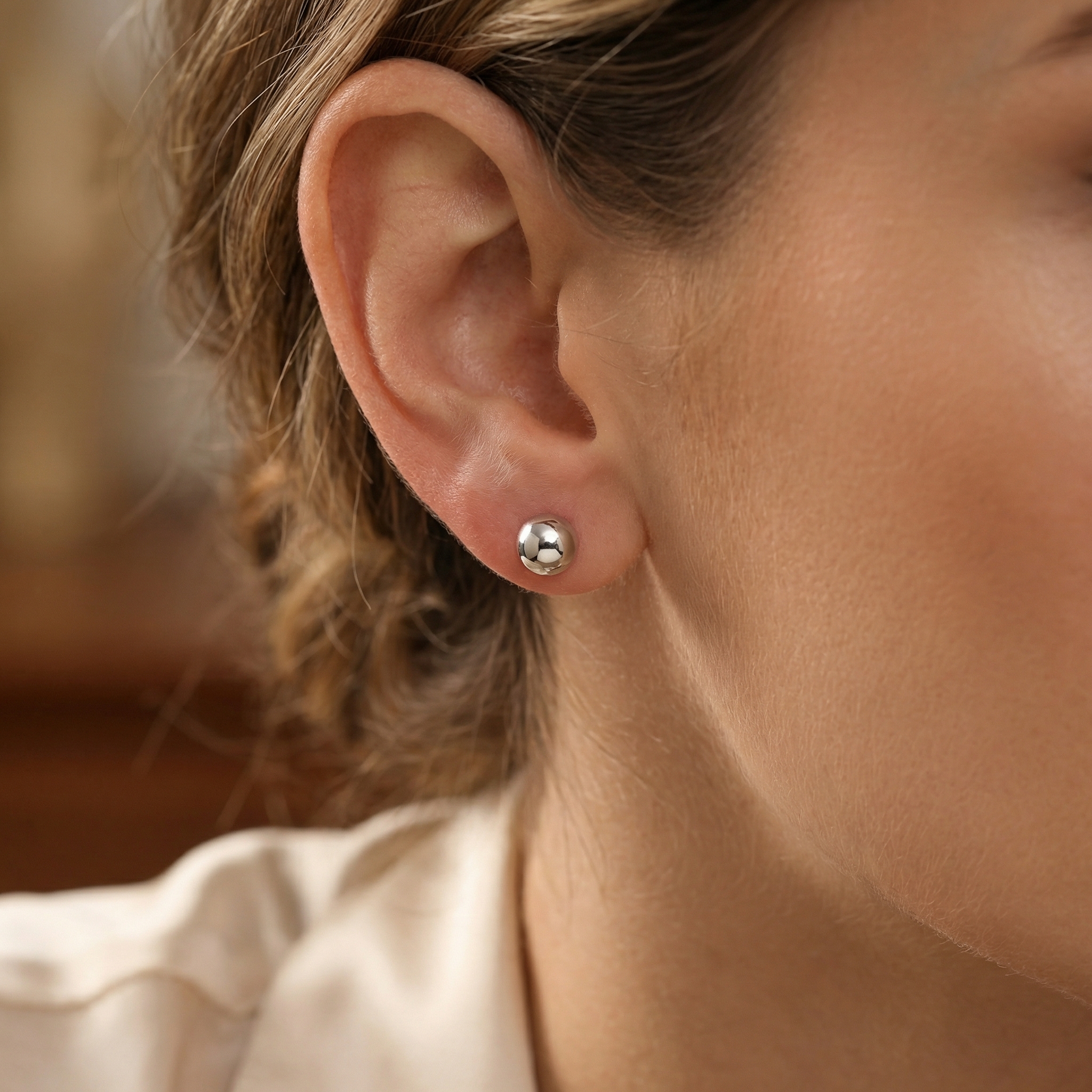 Descubre nuestros aretes minimalistas de esferas pulidas con acabado plateado. Son hipoalergénicos e impermeables, ofreciendo un acabado de lujo. Ideales para aniversarios, cumpleaños y San Valentín.