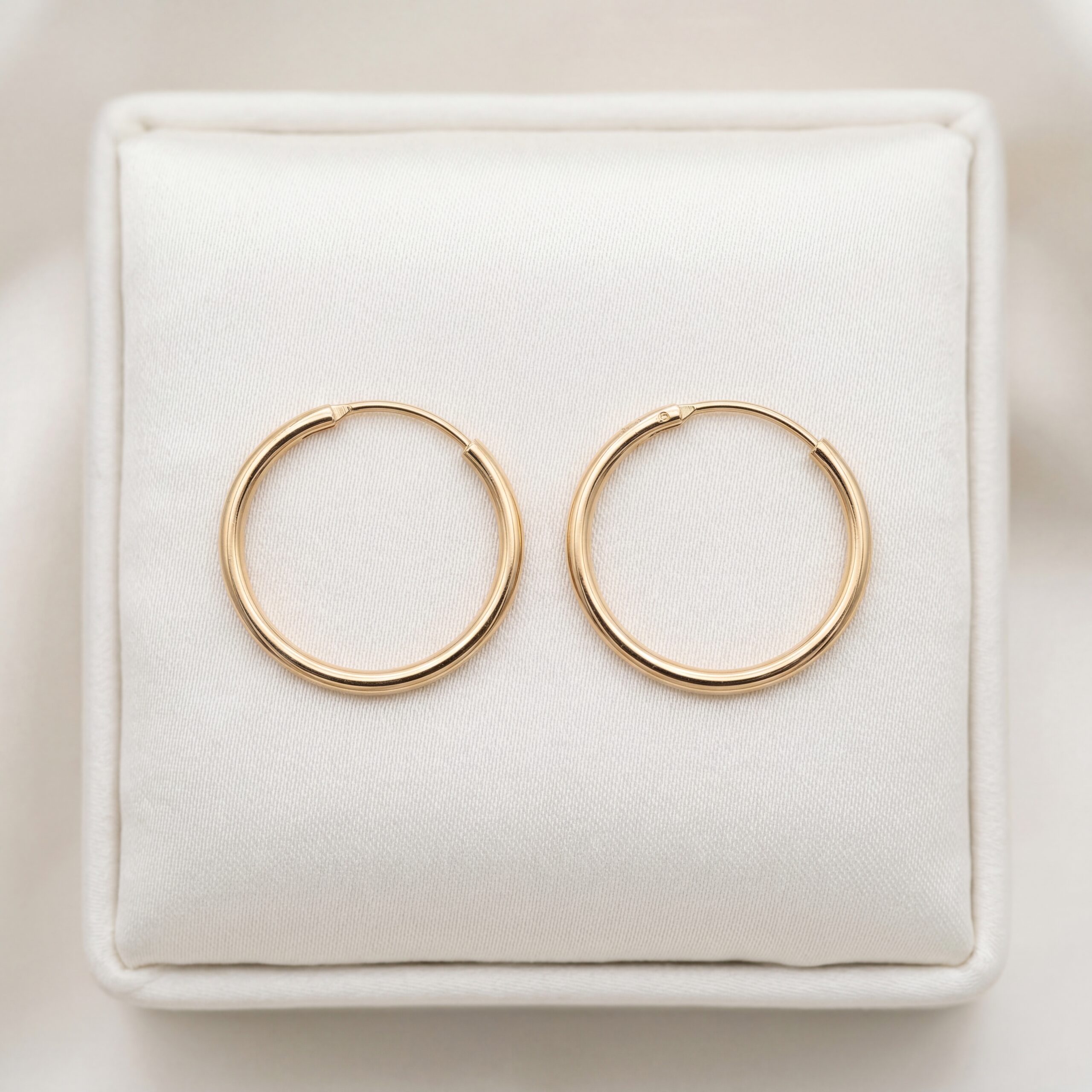 Par de Aretes Argollas delgadas y redondas, Bañadas en Oro 18k con acabado pulido brillante. Son hipoalergénicas, impermeables y de lujo, ideales para Aniversarios, Cumpleaños y San Valentín.