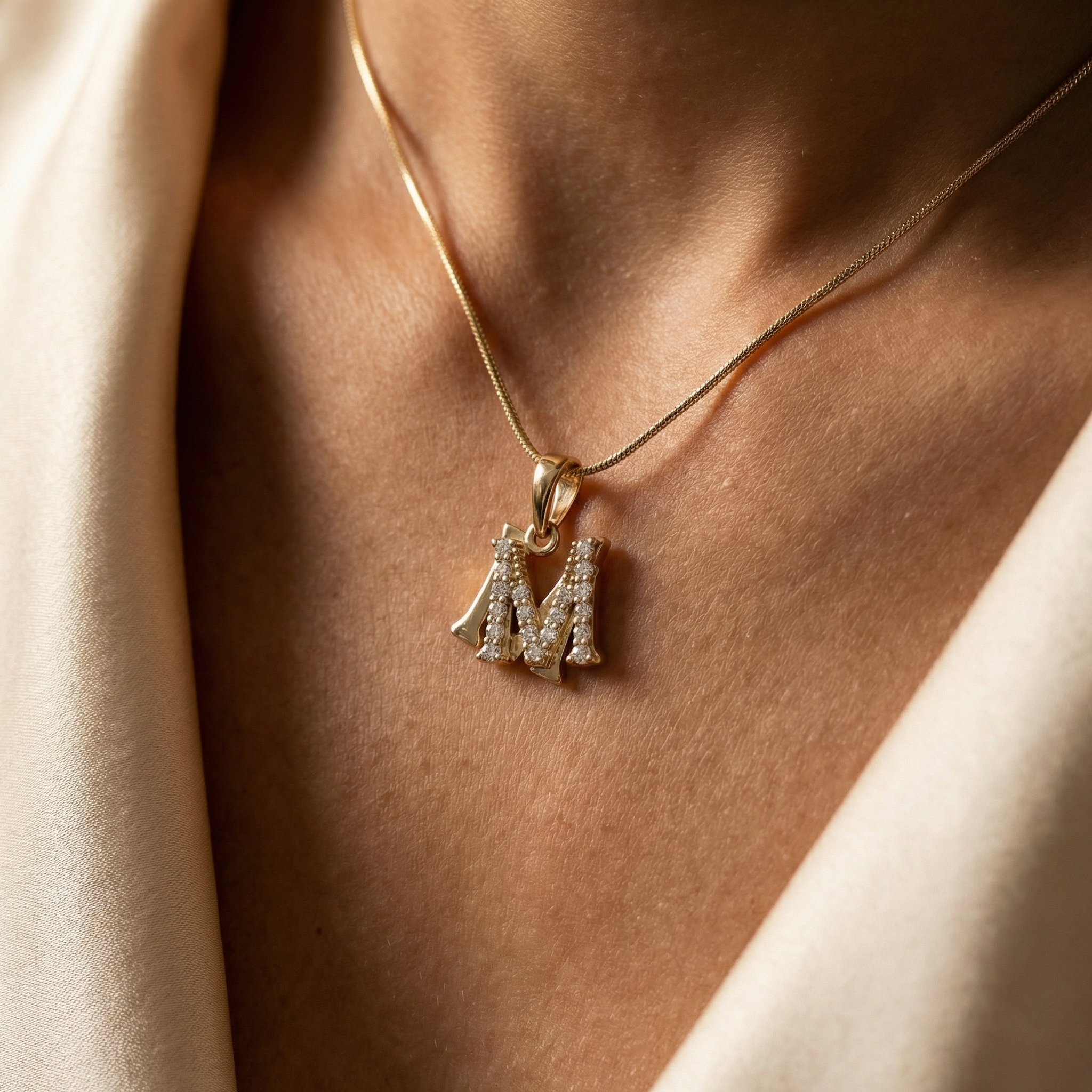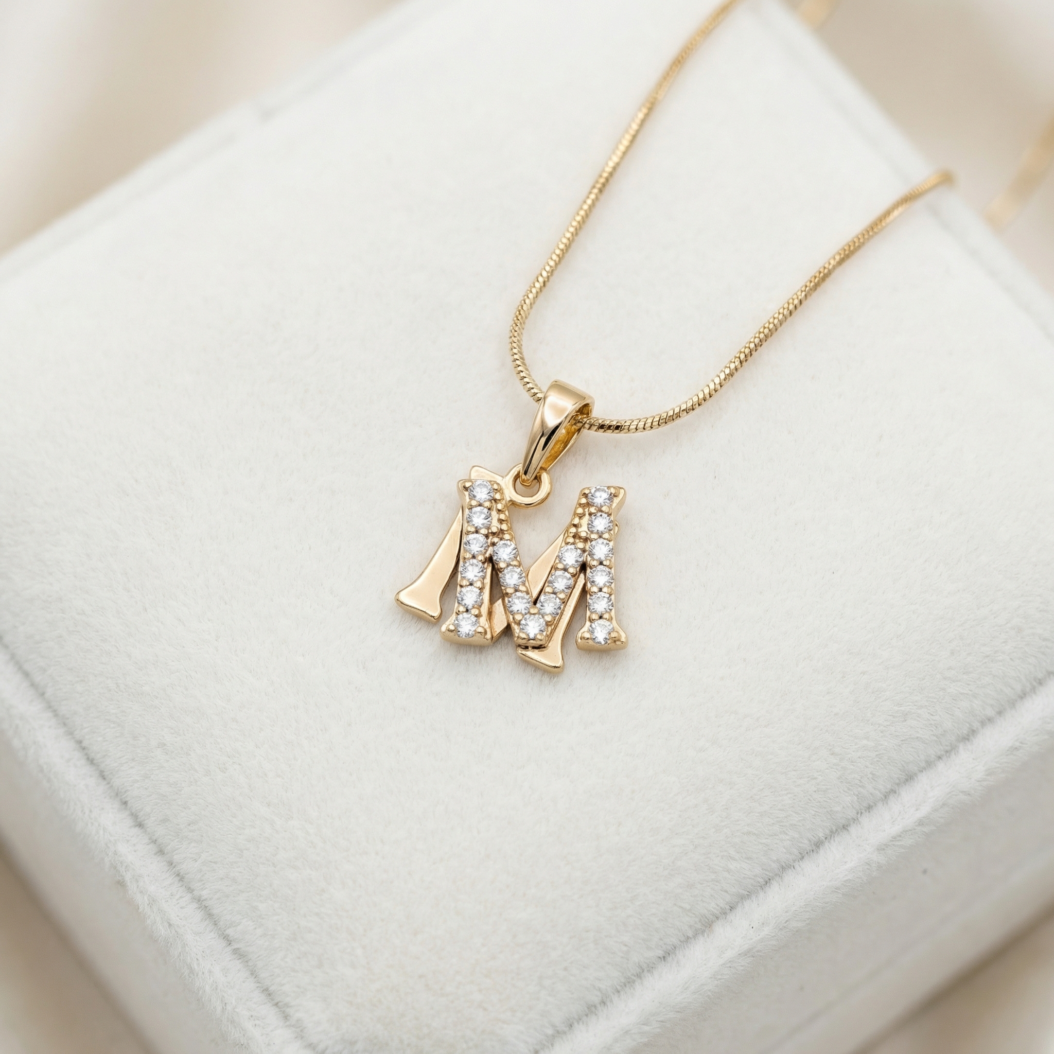 Set de Collar y Dije Letra M con Zirconias en Pavé brillante Bañado en Oro 18k Hipoalergénicas e Impermeables – D’moé Joyería