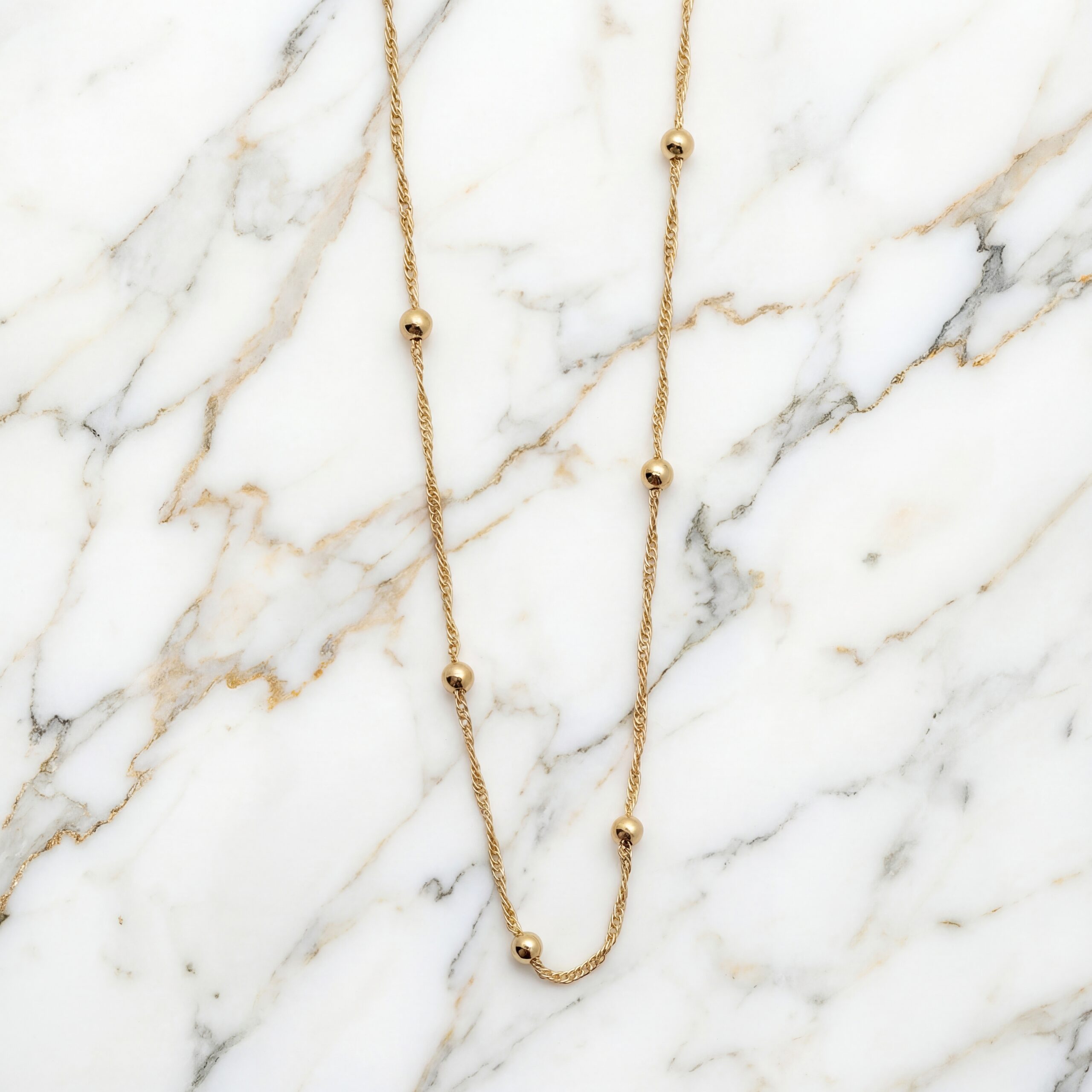 Collar dorado minimalista de cadena tipo cuerda con esferas pulidas. Hipoalergénico e impermeable con acabado de lujo, ideal para Aniversarios, Cumpleaños y San Valentín.