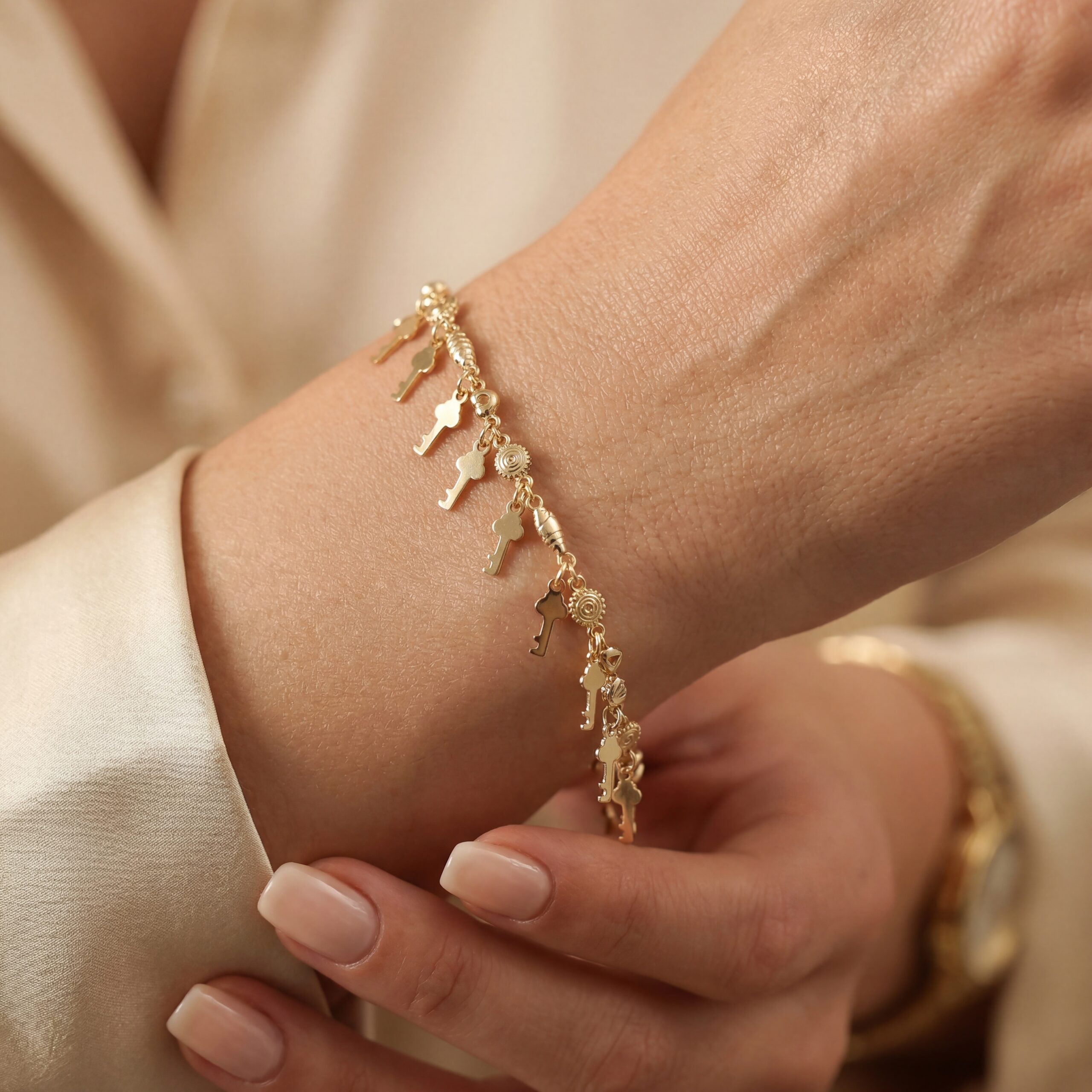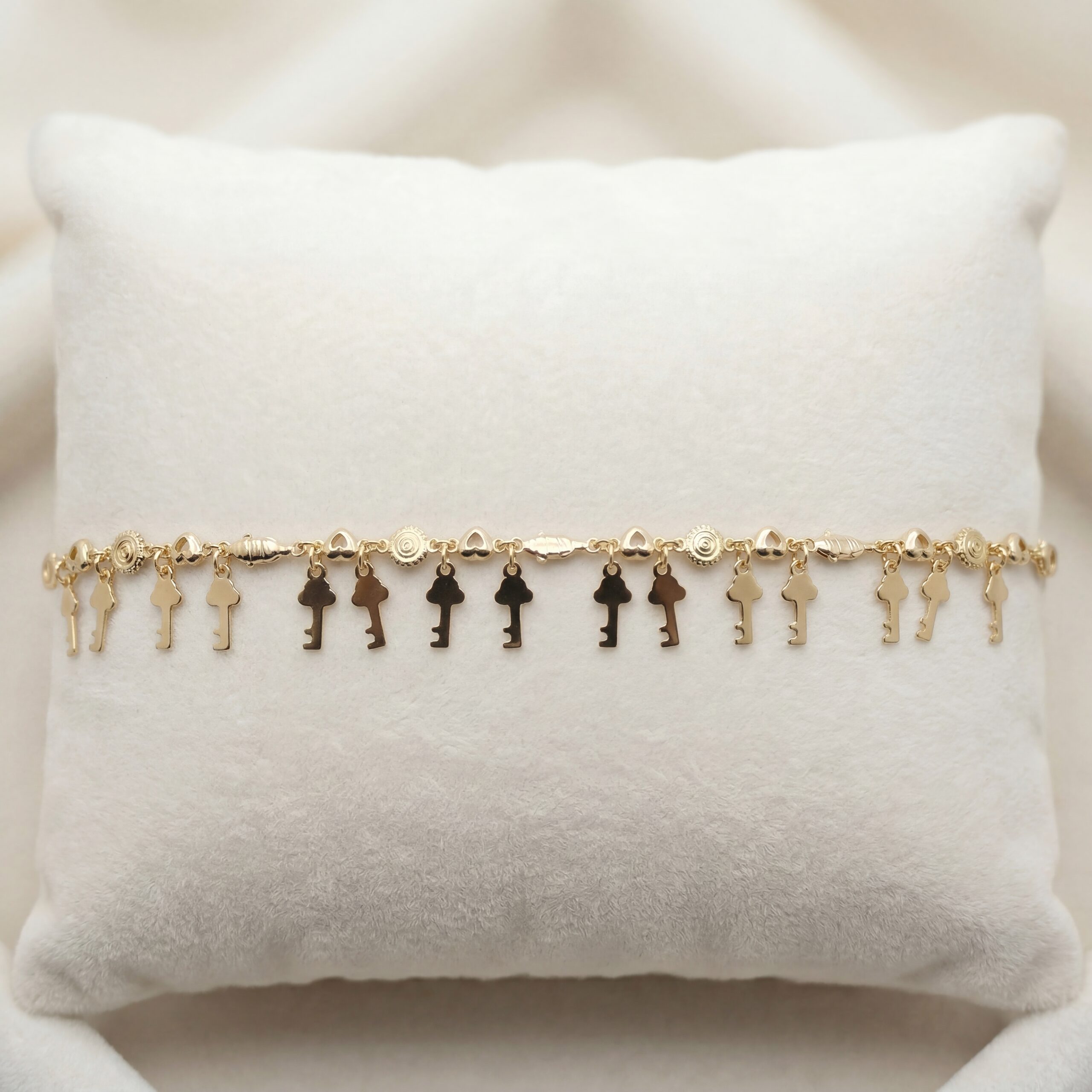 Pulsera con Dijes de Llaves Clásicas Colgantes Bañado en Oro 18k Hipoalergénica e Impermeable – D’moé Joyería